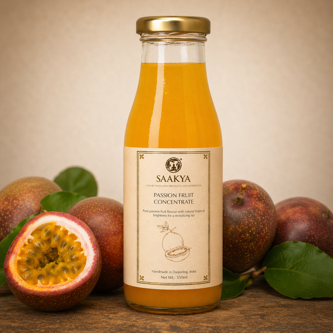Luxury Passion Fruit Concentrate Squash (350ml, Makes 1.4ltr) | Premium Fruit Squash | Sharbat | Summer Drink Concentrate | Mocktail & Cocktail Mixer | No Artificial Colours or Flavours | Sustainable Packaging | Saakya